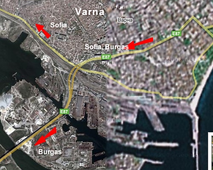 cały czas prosto kierując się na Sozopol lub objechać Burgas tak, jak na