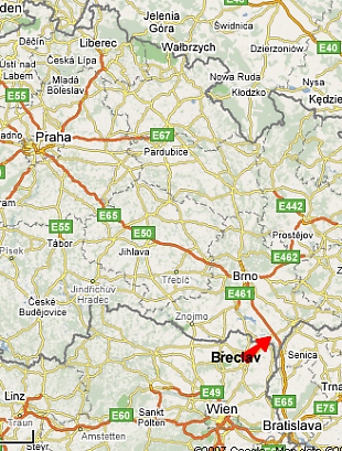 się Breclav (mapa poniżej). Tam zawsze można znaleźć nocleg. My zatrzymujemy się w pensjonacie